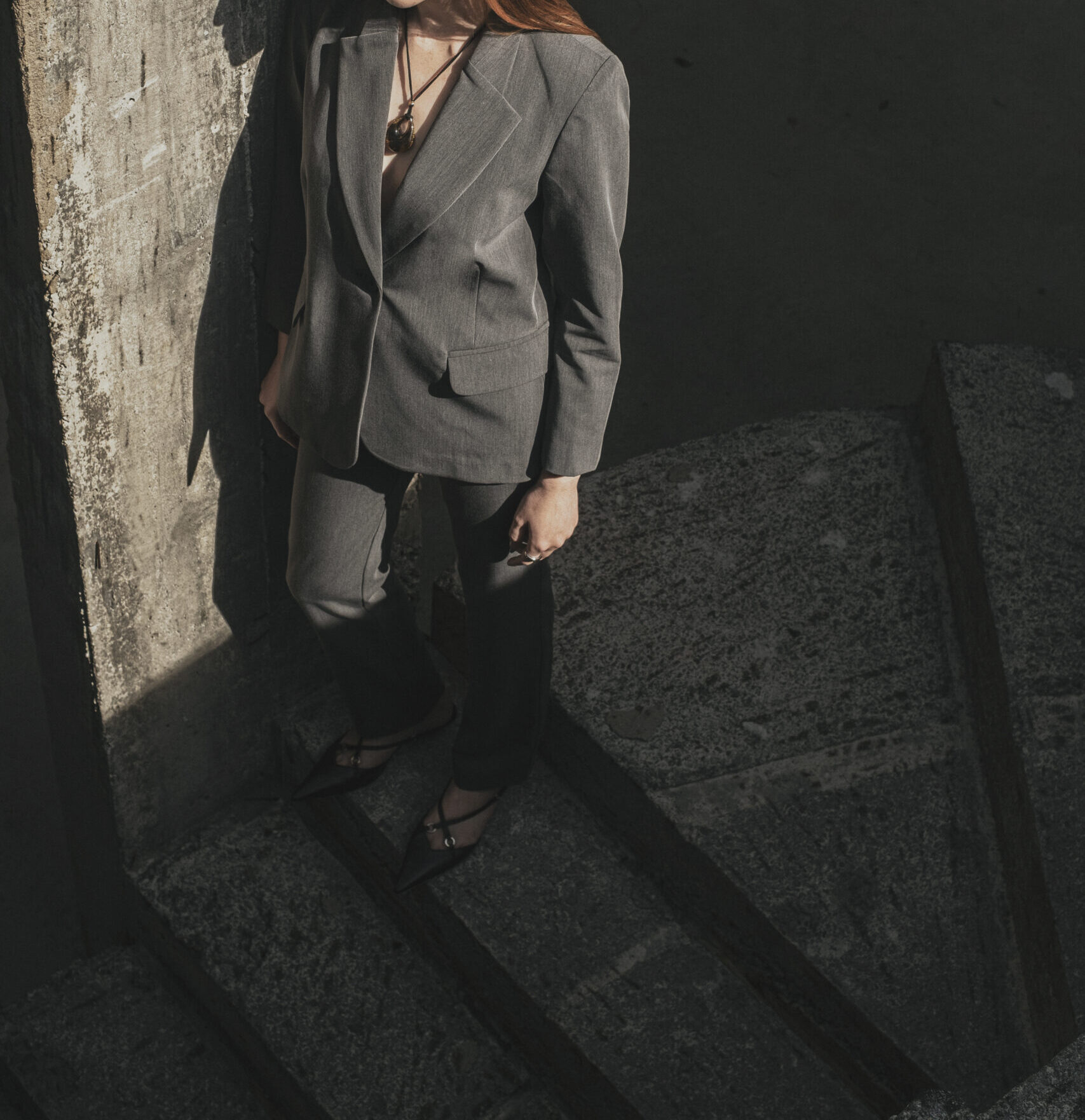 Blazer feminino em alfaiataria cinza, com corte reto e caimento estruturado, ideal para composições elegantes e modernas. Possui lapela clássica, fechamento frontal por botão único e bolsos com aba, trazendo sofisticação e praticidade à peça. Versátil, é perfeito para ambientes corporativos ou produções estilosas com um toque formal.